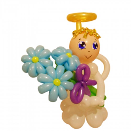 - Модель: Ангелочек из шаров с букетом ромашек
