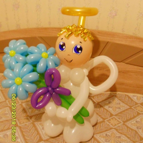 Мітки: Янголятко з кульок з букетом ромашок, янгол з кульок, кульки янголятко, композиція з кульок з ромашками, декор з кульок ромашки, янголятко з букетом, повітряний янгол з ромашками,