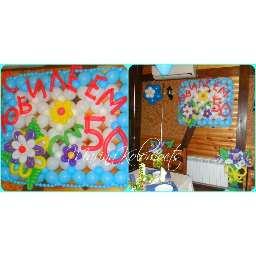 Панно "Ювілей 50 років" з кульокЦе унікальне панно з повітряних кульок стане чудовою прикраса для ва..