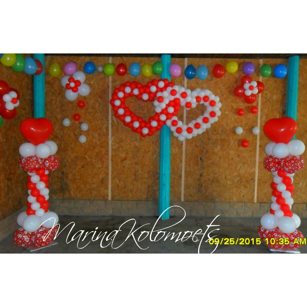 Стійки з подвійним серцем та гірляндою з кульокЦя композиція створена для святкування важливих подій..