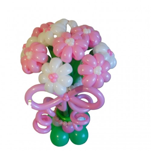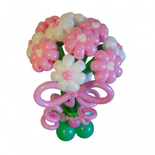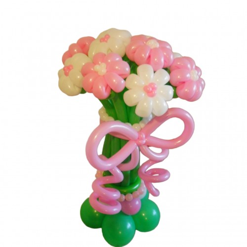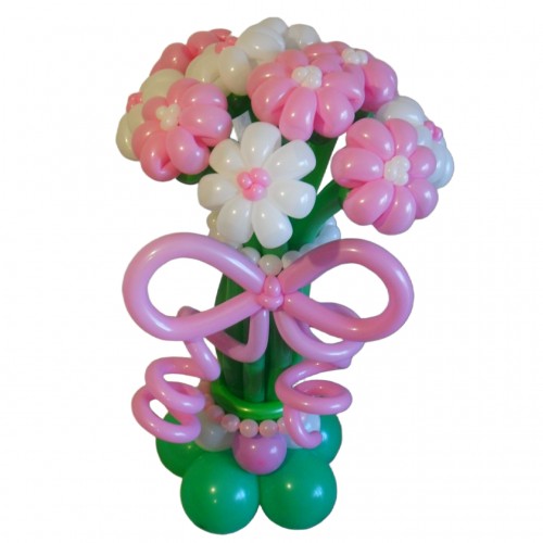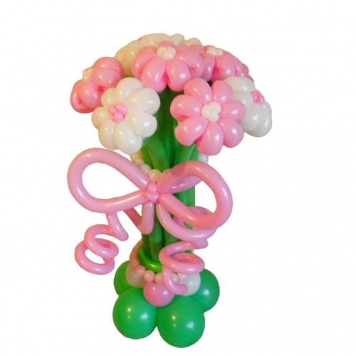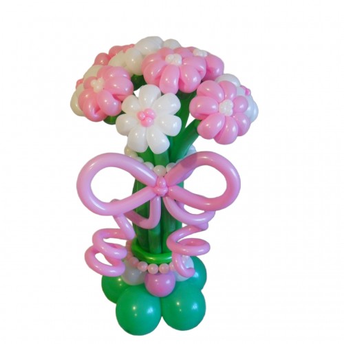 Букет біло-рожевих квітів з повітряних кульок на підставці — символ радості та ніжності!