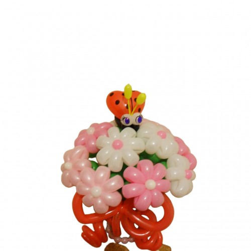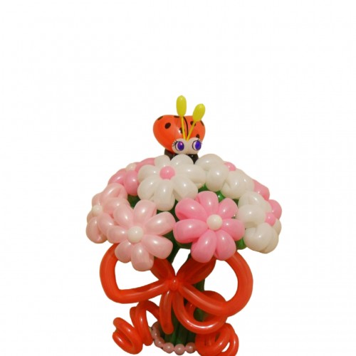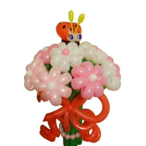 - Модель: Букет бело розовых ромашек из воздушных шаров с божьей коровкой