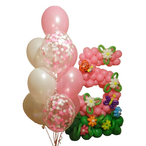 Букет гелієвих кульок з цифрою П'ять
