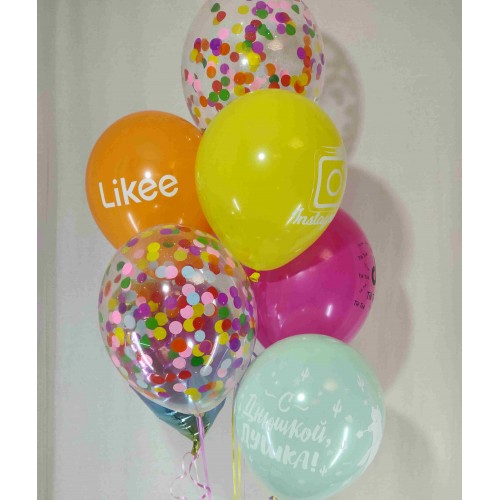 - 6 гелієвих кульок з написами Лайк, Тік Ток, Інстаграм 12"