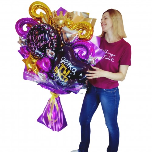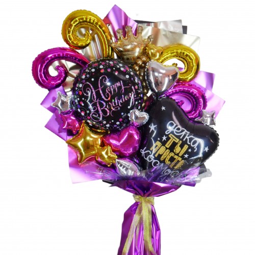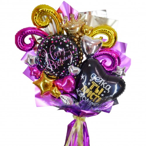 Пориньте у світ магії з нашим авторським букетом "Феєрія"! Ця новинка в світі аеродизайну — яскравий та барвистий букет із фольгованих кульок, створений, щоб підкреслити вашу неперевершену королівську натуру.