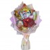 Букет акуратно упакований у крафтовий папір та плівку, а також прикрашений атласними стрічками, щоб додати ще більше шарму та елегантності.