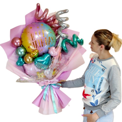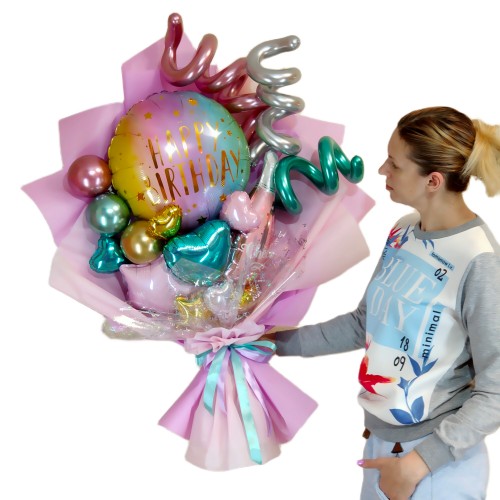 Підкресліть важливість цього дня за допомогою яскравого і святкового букета з шарів "Happy Birthday"! Цей крафтовий букет складається з фольгованих куль, надутих повітрям, які зберігають свою форму протягом кількох місяців, даруючи вам радість і яскраві емоції.