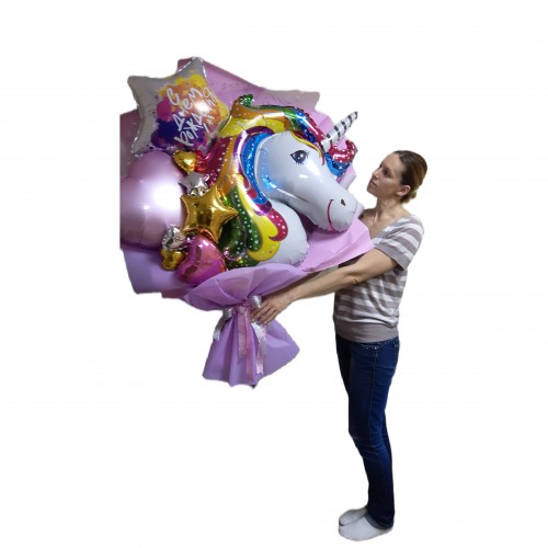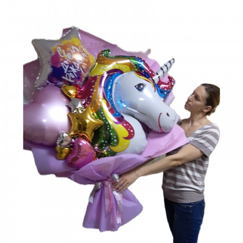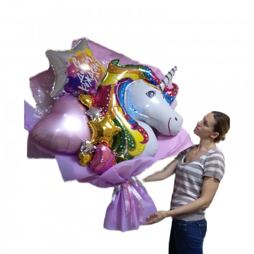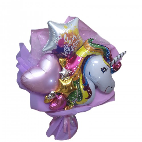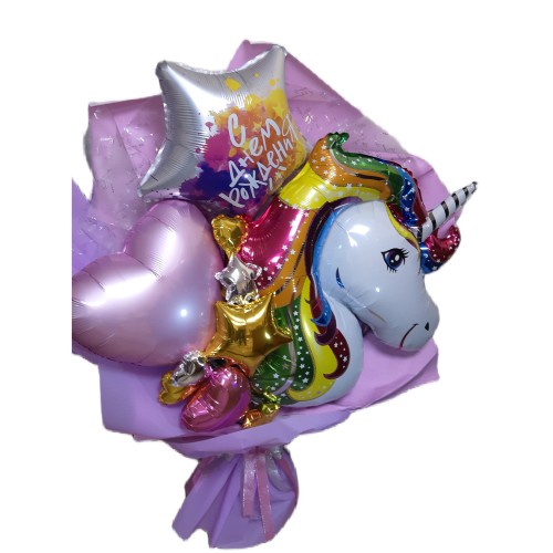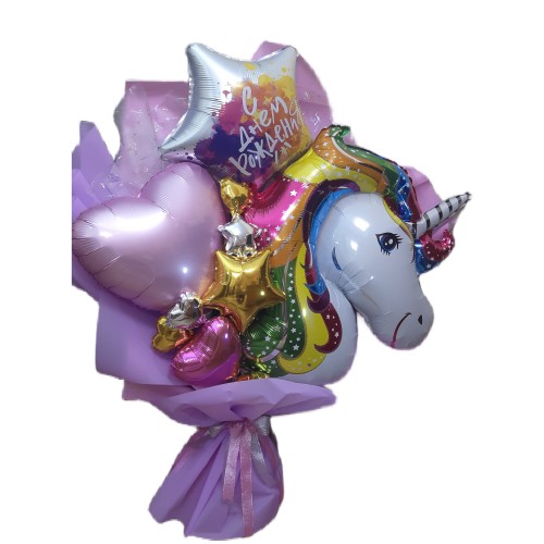 Крафтовий букет з кульок "Радужний Єдиноріг"