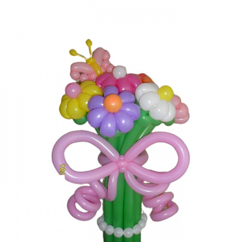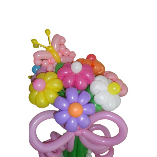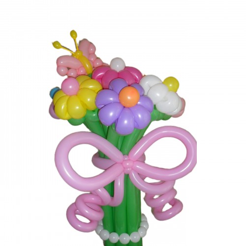 Ця яскрава композиція з повітряних кульок стане чудовим доповненням для привітання з будь-яким святом! Букет складається з семи кольорових ромашок з повітряних кульок, метелика, банта та бусиків.