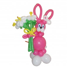 Ця чарівна композиція "Рожевий Заєць" із повітряних кульок створить святкову атмосферу на будь-якому заході! Вона складається з фігури зайчика, доповненої п’ятьма яскравими ромашками з кульок.
