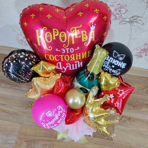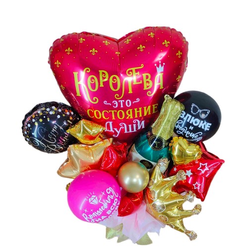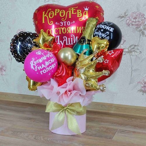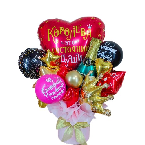 Подаруйте своїй "королеві" справжнє свято з нашим авторським букетом з куль у коробці! Цей яскравий та барвистий букет з шарів — новинка у світі аеродизайну, яка подарує радість і незабутні емоції. Букет стане чудовим сюрпризом для ваших близьких на день народження чи інше свято.