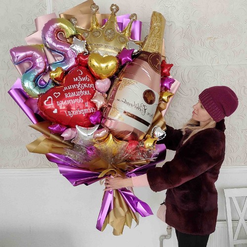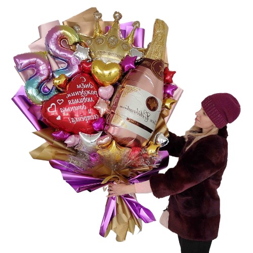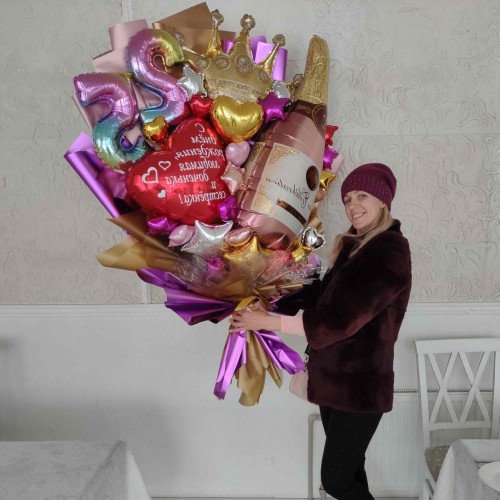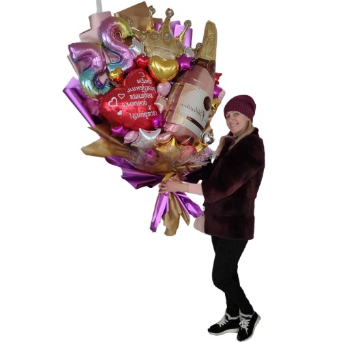 Здивуйте своїх близьких яскравим і незабутнім подарунком — крафтовим букетом "Захоплення"! Цей авторський букет з шарів із фольгованих кульок стане справжнім акцентом на будь-якому святі, додаючи барвистості та атмосфери радості.