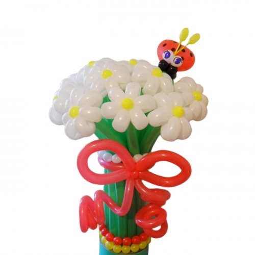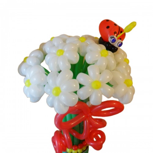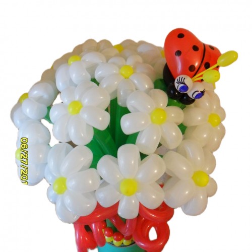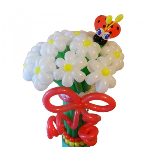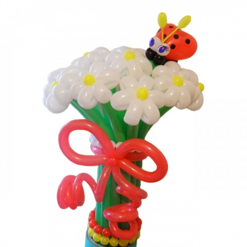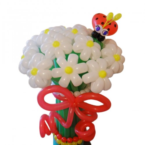 - Модель: Букет ромашек из шаров белого цвета с божьей коровкой