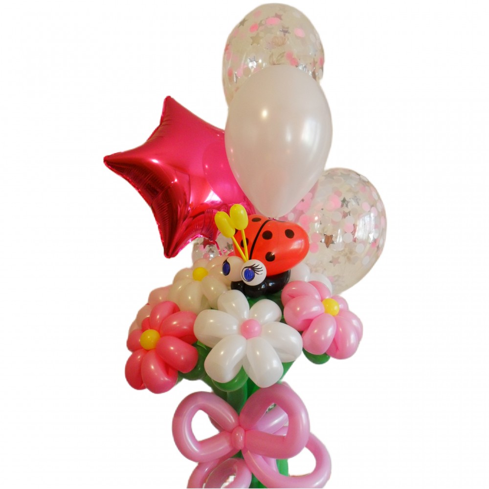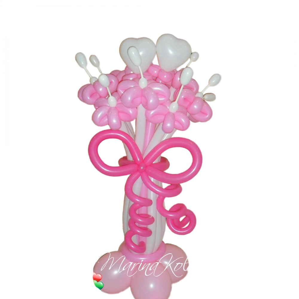 Букет з повітряних кульок — Сердечки та РомашкиЦей чарівний букет для святкового привітання складаєт..
