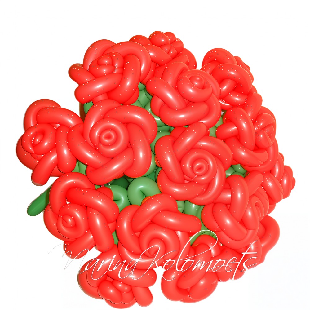 Букет червоних троянд з кульокЦя елегантна композиція з повітряних кульок стане ідеальним подарунком..
