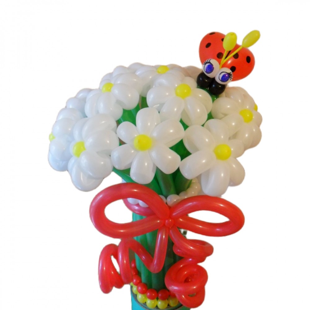 Букет ромашок з кульок білого кольору з сонечком Букет ромашок з кульок білого кольору з сонечком —..