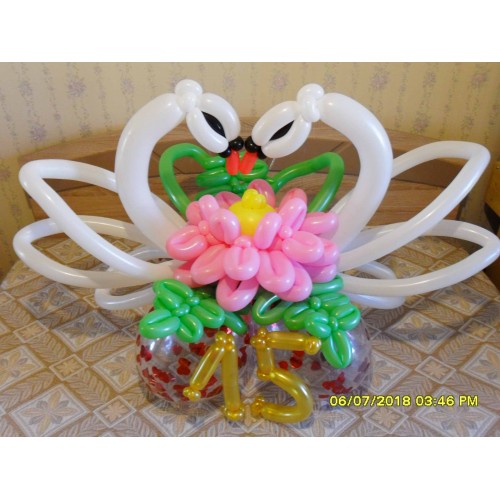 Лебеді з кульок Ця вишукана композиція включає двох лебедів із кульок з лілією на підставці та цифр..