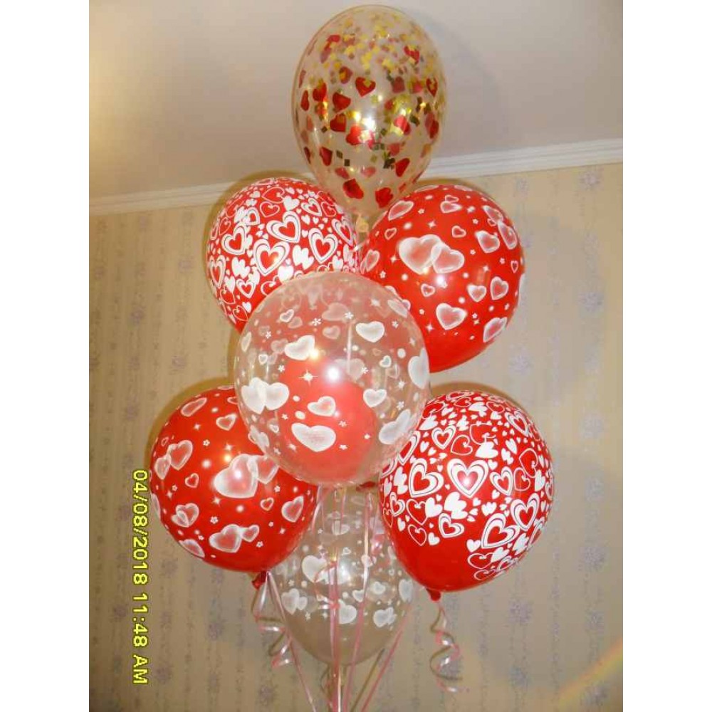 Кульки в сердечко гелій з конфетті
