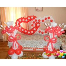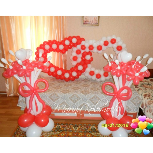 Мітки: Подвійне серце та два букети на підставці з кульок, кульки для свят, букети з кульок, кульки серце, композиція з кульок для свят, кульки Київ, кульки Троєщина, подарунок на День святого Валентина,