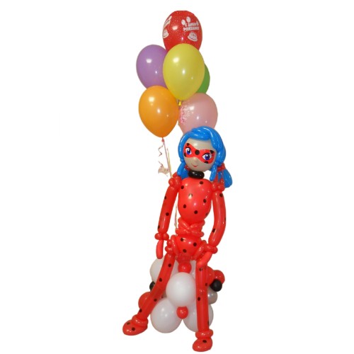 Унікальна композиція, яка не залишить байдужим жодного фаната! Фігура Леді Баг із кульок – це чудовий подарунок для будь-якої урочистої події. Виготовлена з ретельно підібраних кульок, ця композиція стане яскравим акцентом на святі.