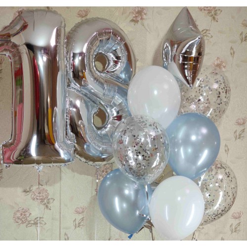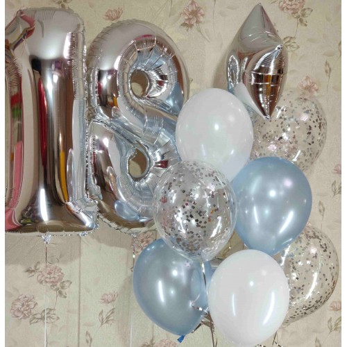- Фольгированная цифра 18, наполненная гелием, которая станет центром вашего праздника.