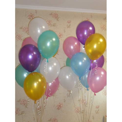 - 18 гелієвих кульок 12", наповнених гелієм, для створення святкового настрою.