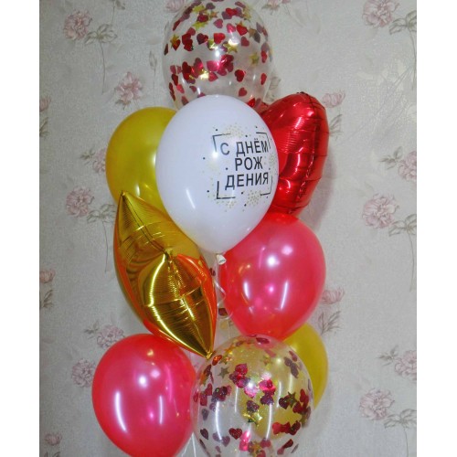 - Три гелієві кульки з конфетті 14" — ефект святкового сяйва, що додає особливого шарму.