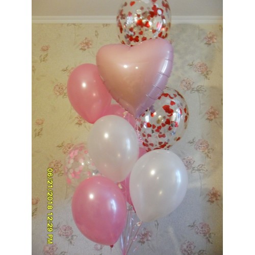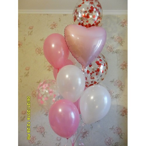 - Модель: Гелиевые шарики с конфетти в сердечко и фольгированным сердечком
