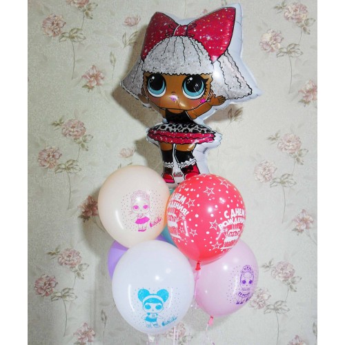 Букет гелієвих кульок "Лялька Лол" стане яскравим акцентом на будь-якому святі! Ідеальний вибір для привітання з Днем народження або іншою урочистою подією. Композиція складається з: