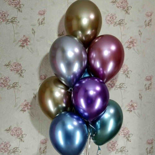 - 9 гелієвих кульок Хром — насичені, блискучі кольори для особливого ефекту.