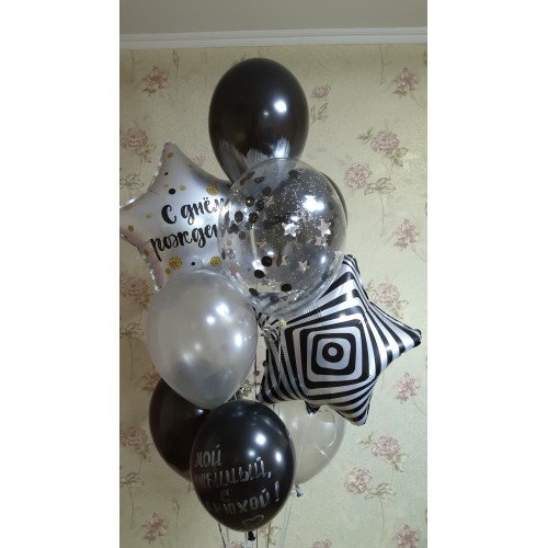 - Дві гелієві кульки срібло 12", що підкреслюють елегантність та стиль.