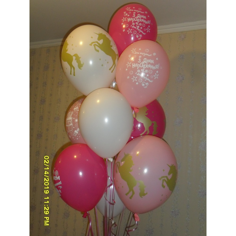 Гелієві кульки з однорогамиЧарівний фонтан з гелієвих кульок для привітання дівчинки зі святом склад..