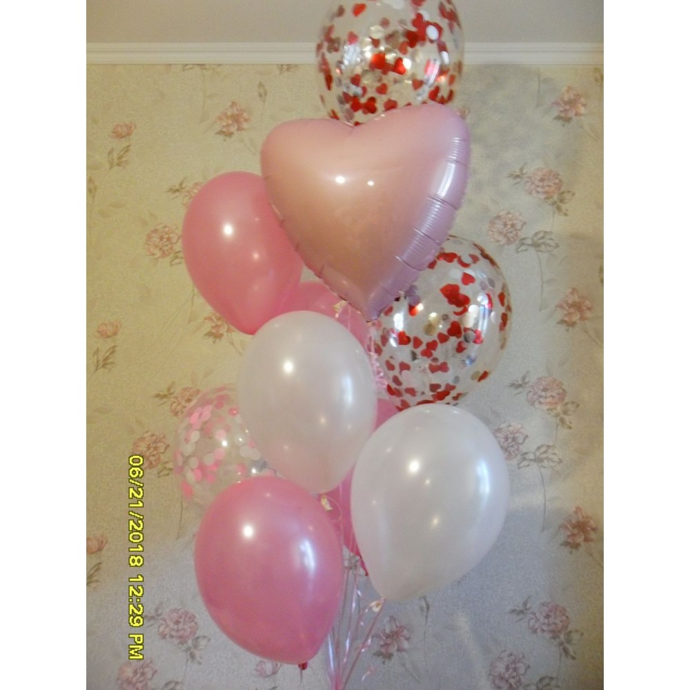Гелієві кульки з конфетті у формі серця та фольгованим сердечкомЦей чудовий букет з гелієвих кульок ..