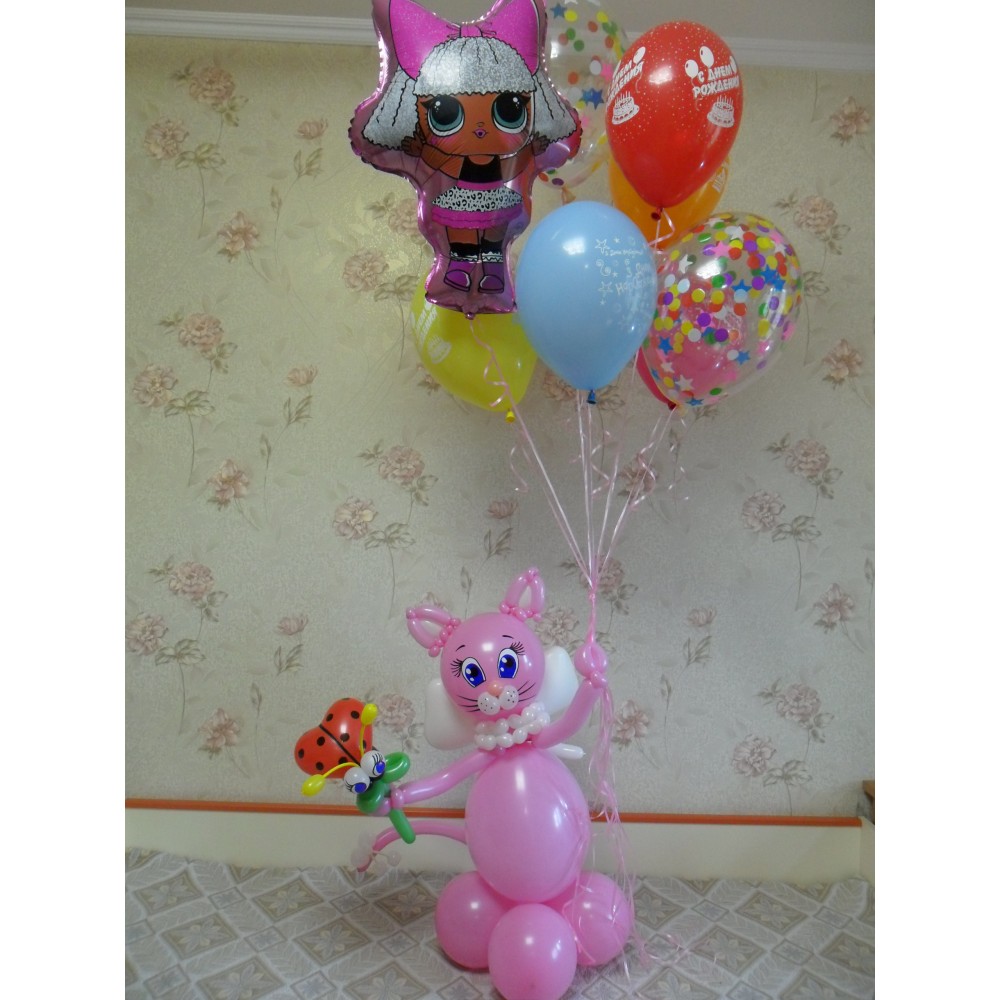 Гелієві кульки з Котиком із кульокЦя чудова композиція гелієвих кульок складається з іграшки Котик з..