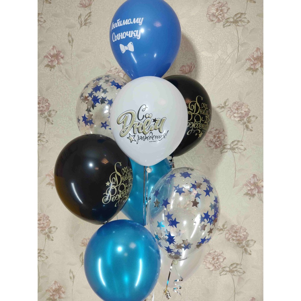 Гелієві кульки з блакитним конфетті — ідеальний вибір для привітання вашого синочка з Днем народженн..