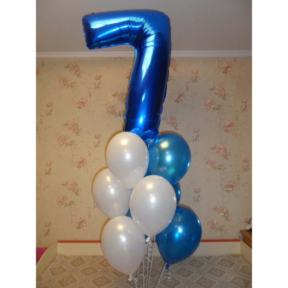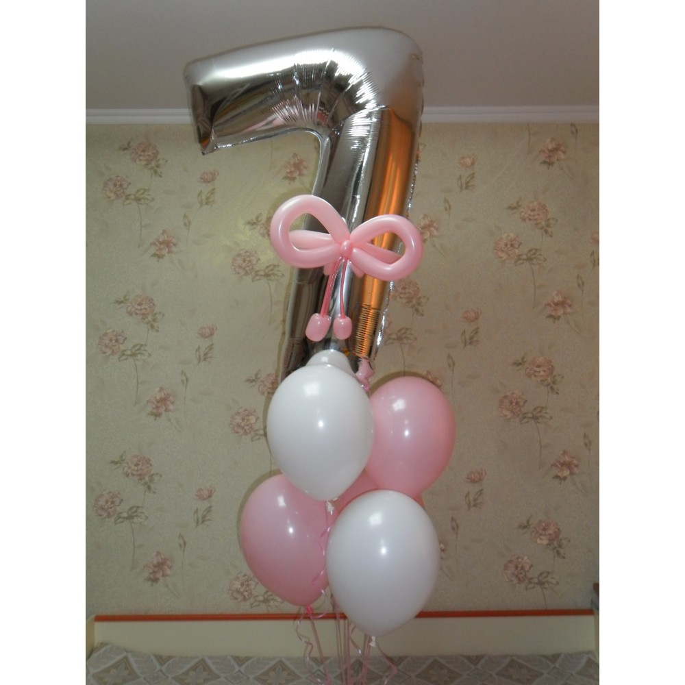 Гелієві кульки СімкаЦей чудовий фонтан з кульок з фольгованою цифрою "Сім", наповненою гелієм, стане..