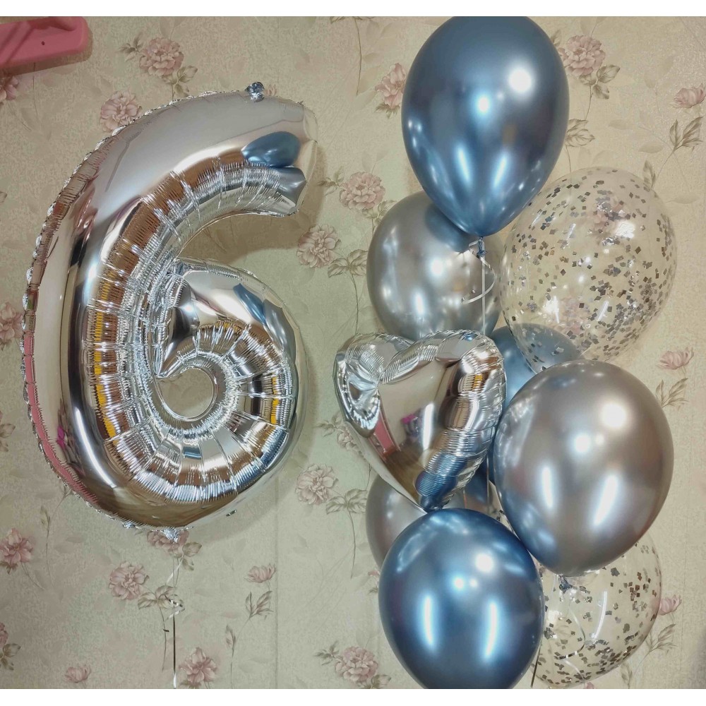 Яскравий букет гелєвих хромованих кульок