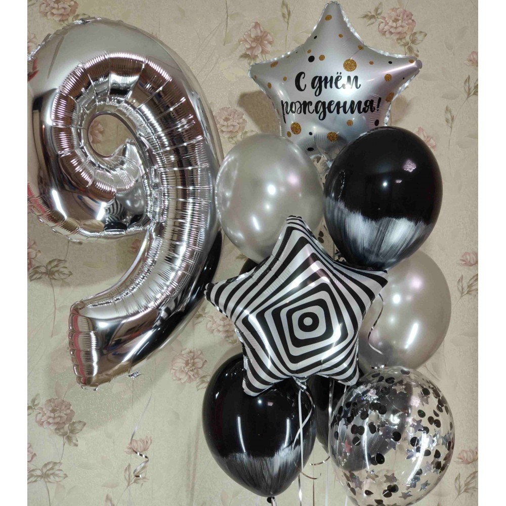 Гелієві кульки "9 років" Опис товару:Композиція із гелієвих кульок – чудовий вибір для святкування ..
