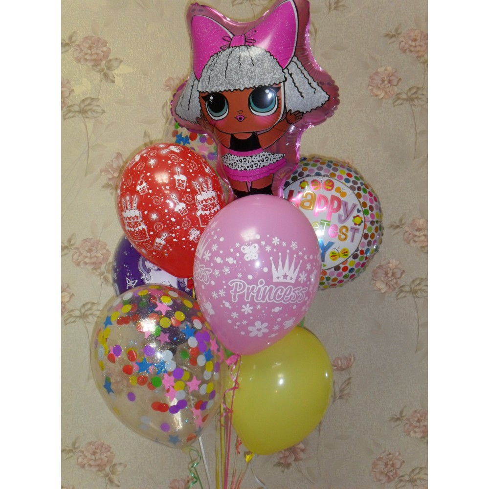 Гелієві кульки L.O.L.Ця композиція гелієвих кульок для дівчинки складається з:Фольгований шар L.O.L...