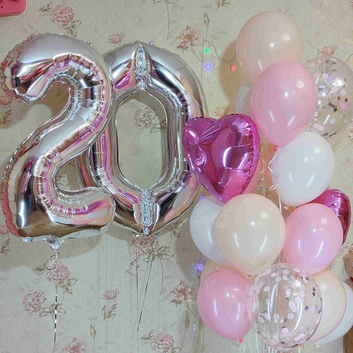 Гелієві кульки "20 років"Букет гелієвих кульок для святкування 20-річчя – це яскрава прикраса, яка д..