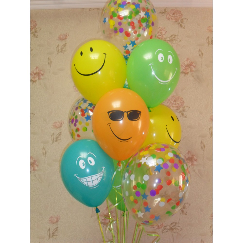 Гелієві кульки "Веселі смайли 2" — фонтан із повітряних кульок для святкових моментів!Подаруйте яскр..