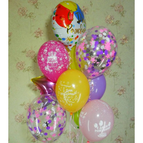 Гелієві кульки для святкування Дня народженняЦя композиція з гелевих кульок стане чудовим доповнення..