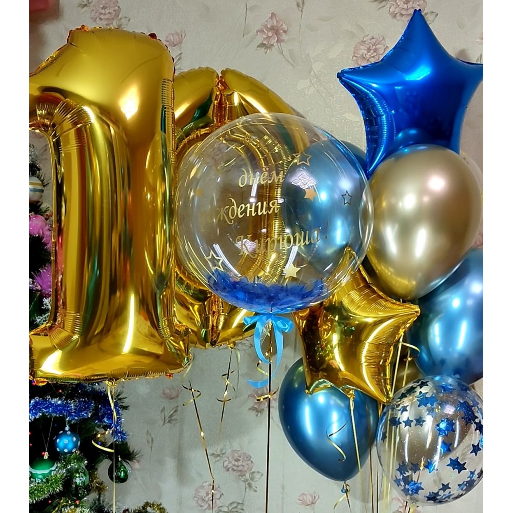 Гелієві кульки "Десятиліття хлопчику"Опис товару: Цей стильний фонтан гелієвих кульок стане чудовим..