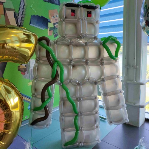 Чудова іграшка для привітання з Днем народження – Залізний Голем із повітряних кульок, виконаний у стилі популярної гри Minecraft.