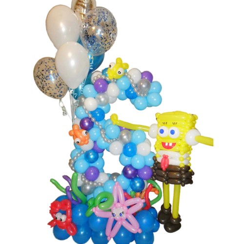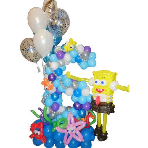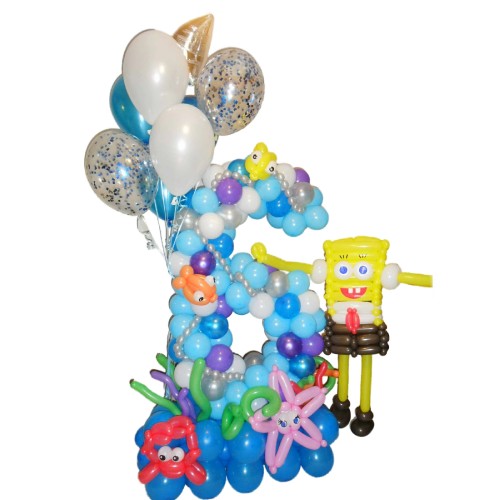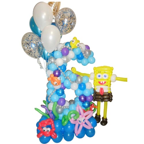 Губка Боб з кульок з цифрою шість
