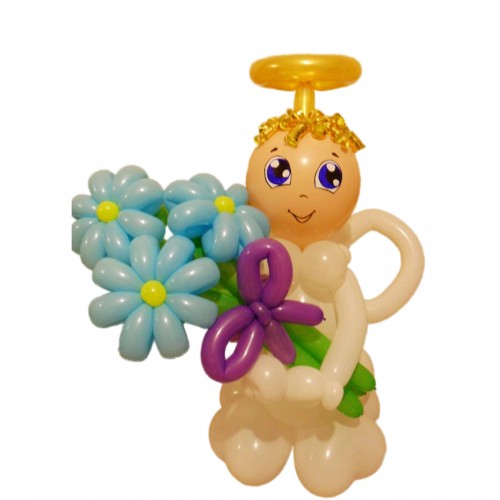Янголятко з кульок з букетом ромашокЦя чарівна композиція з іграшок з кульок — ідеальний подарунок д..