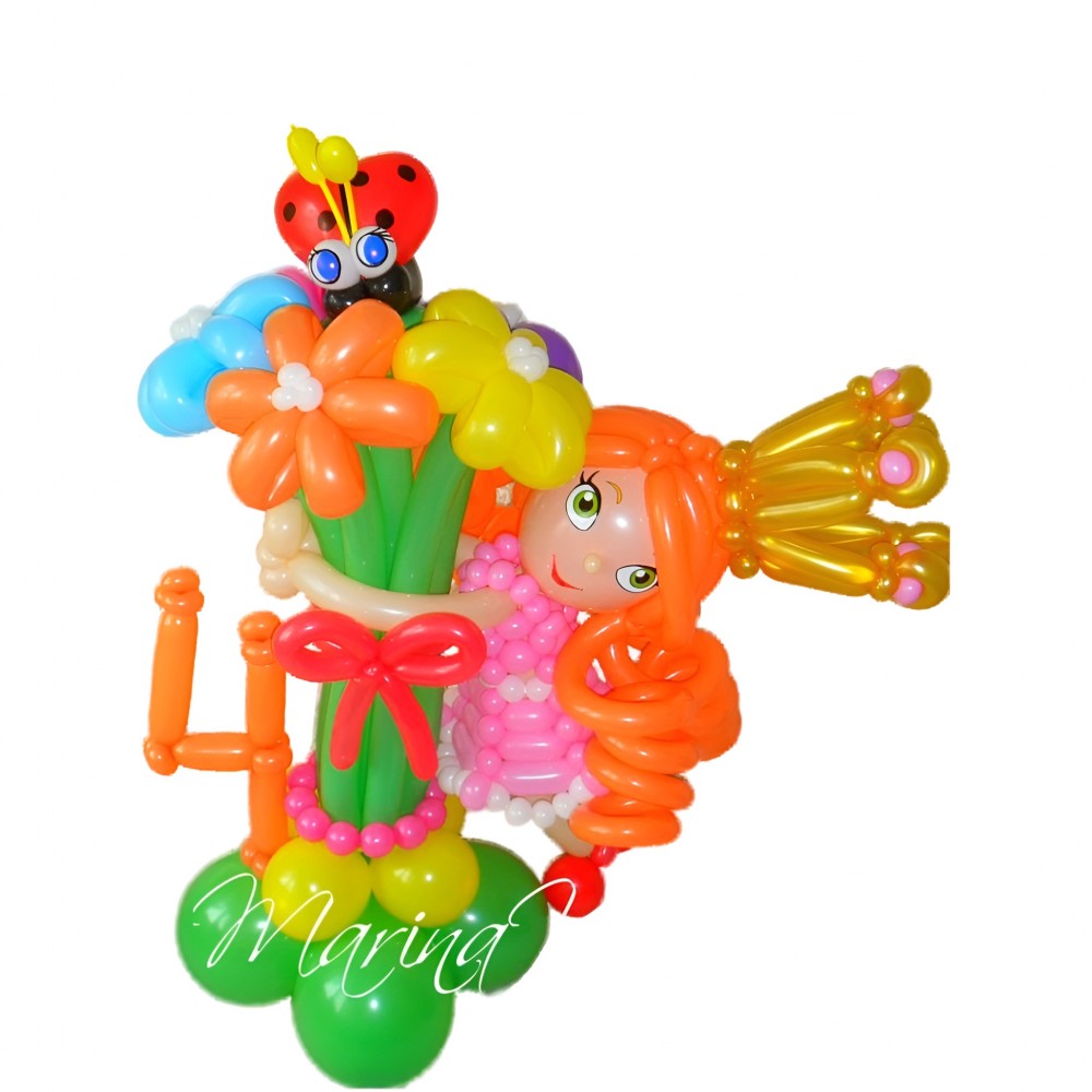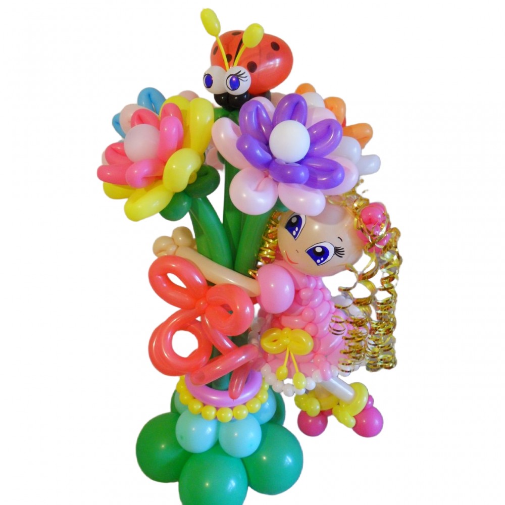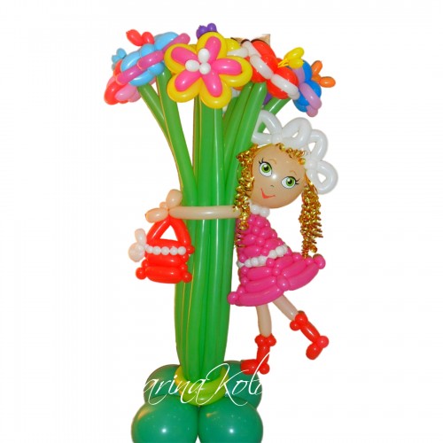 Букет із кульок з лялечкою Ця чудова композиція з повітряних кульок стане яскравим акцентом на свят..