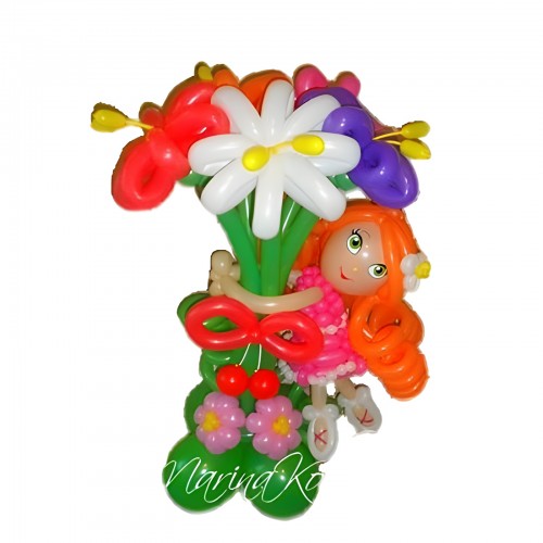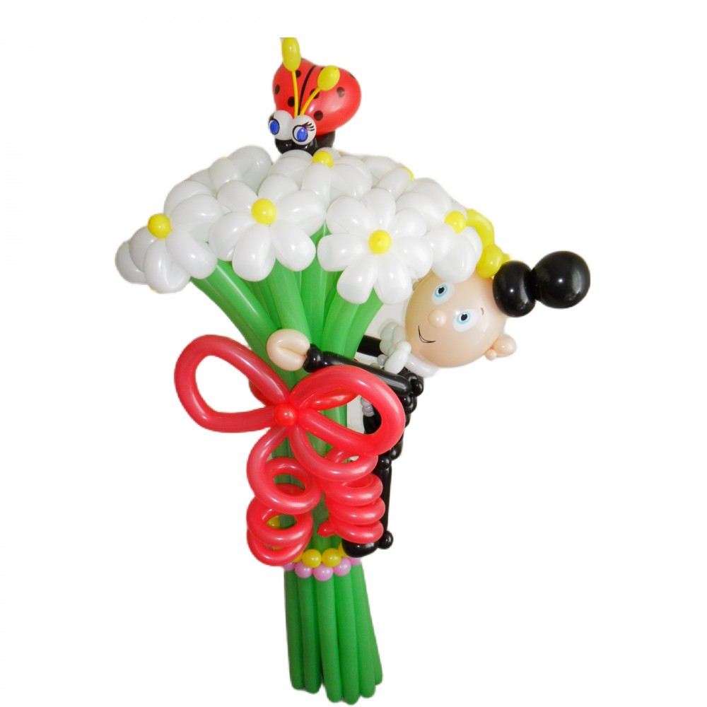Дівчинка з кульок з букетом ромашок Ця чудова композиція із кульок стане яскравим подарунком..