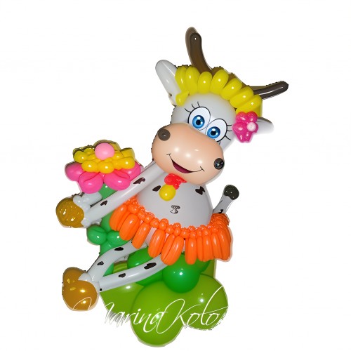 Буренка з кульокЦя чарівна фігура корівки з кульок стане оригінальним подарунком або елементом декор..