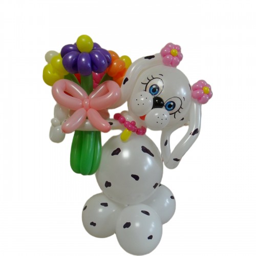 Букет з куль "Собачка Дівчинка" Опис товару: Ця чарівна композиція "Собачка Дівчинка" з повітряних..